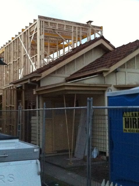 The builders worked hard this week to get that first floor floor, frame and roof beams up. Was great to see that first bit of first floor frame go up, and to see it evolve! Only bit missing now is the rake on the eastern side. Subfloor down in the rooms on the ground floor, so you can walk around easily now. We've all been up the ladder to the first floor now. View is lovely. Rooms feel a good size upstairs. I think there will be some lovely sky glimpses through different windows and skylights. Once we plant a golden robinia in the rear yard, we will block the view down to the rear neighbours! Window and door measure this week!